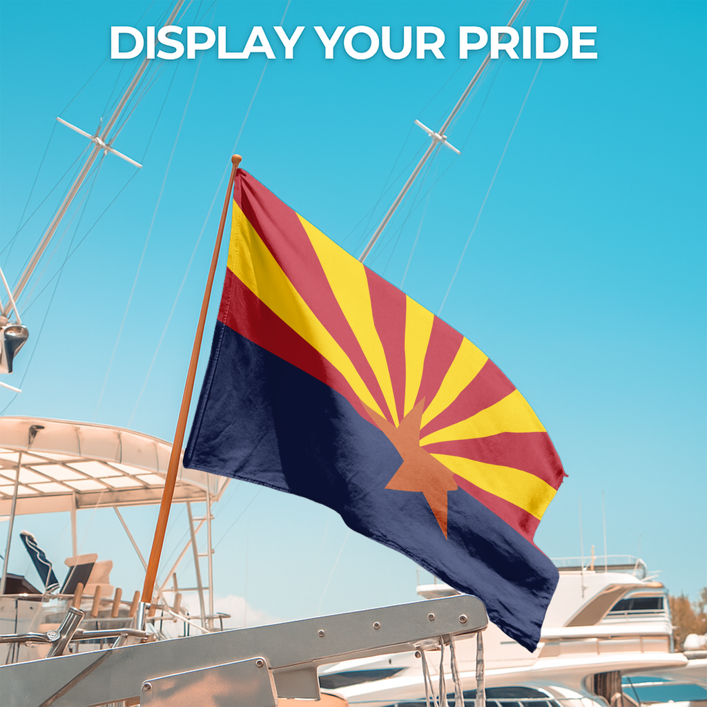 Printed with advanced UV-resistant dyes, the Arizona flag’s bold red and yellow rays, deep blue field, and copper star remain vibrant, crisp, and fade-resistant.