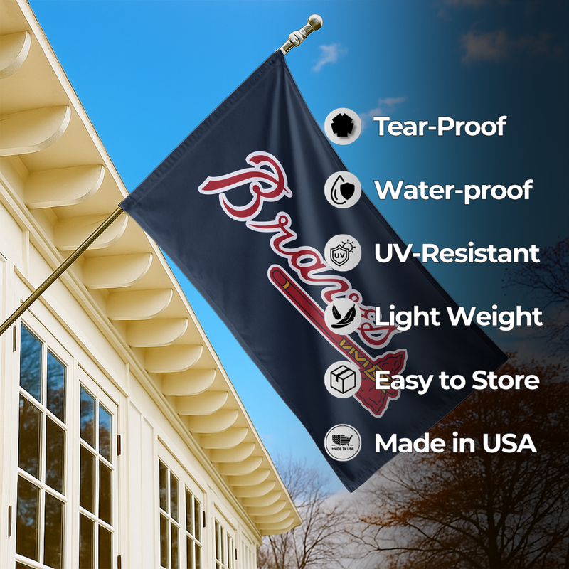 🚩 Your Team in Motion – Made in USA: A flag that moves, waves, and commands attention. Whether it’s game day or every day, this Braves flag turns passion into a powerful statement—proudly Made in the USA.