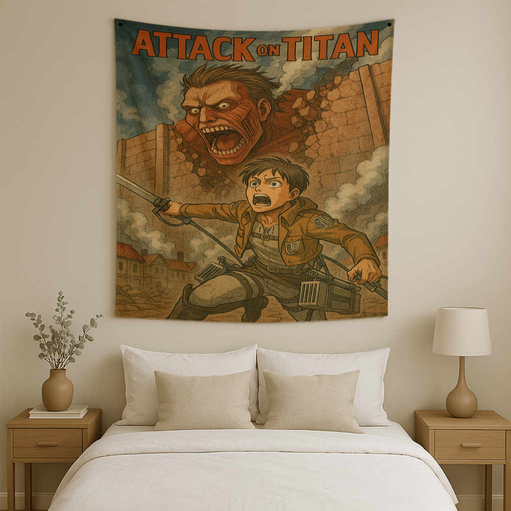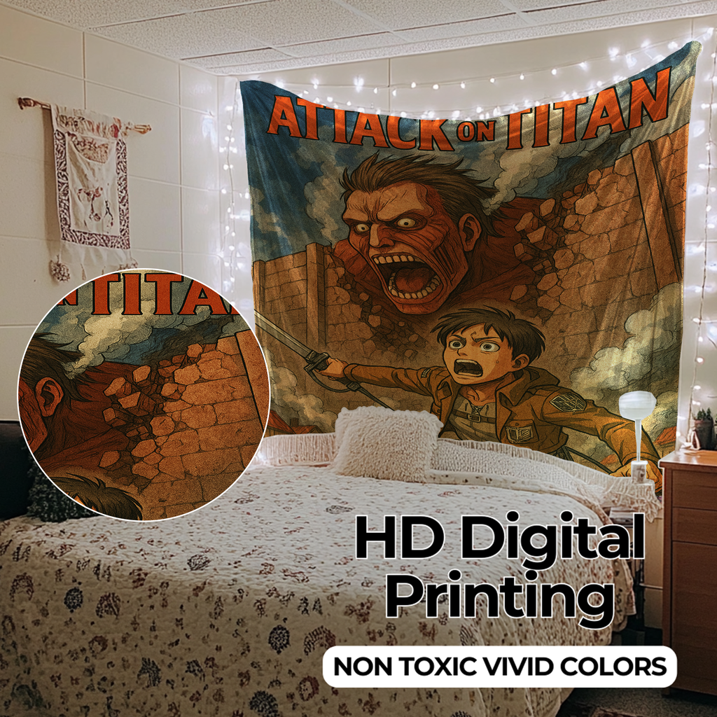 ATTACK ON TITAN: WALL BREACH WALL TAPESTRY – Epic Anime Battle & Dark Fantasy Wall Art