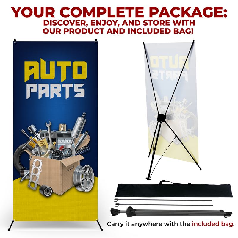 Showcase your auto parts business with the AUTO PARTS X-Banner, designed to grab attention and present your services with a professional touch. Made from 100% high-quality aluminum alloy, this banner stand is lightweight, sturdy, and easy to assemble or store, making it perfect for retail shops, trade shows, and garage displays.