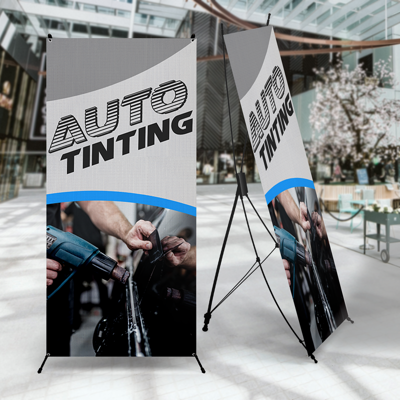 Advertise your window tinting services with the AUTO TINTING X-Banner, crafted for a sleek, professional presentation that captures attention. Built from 100% high-quality aluminum alloy, this banner stand is lightweight, durable, and easy to assemble or store, making it ideal for tint shops, auto service centers, and trade shows.