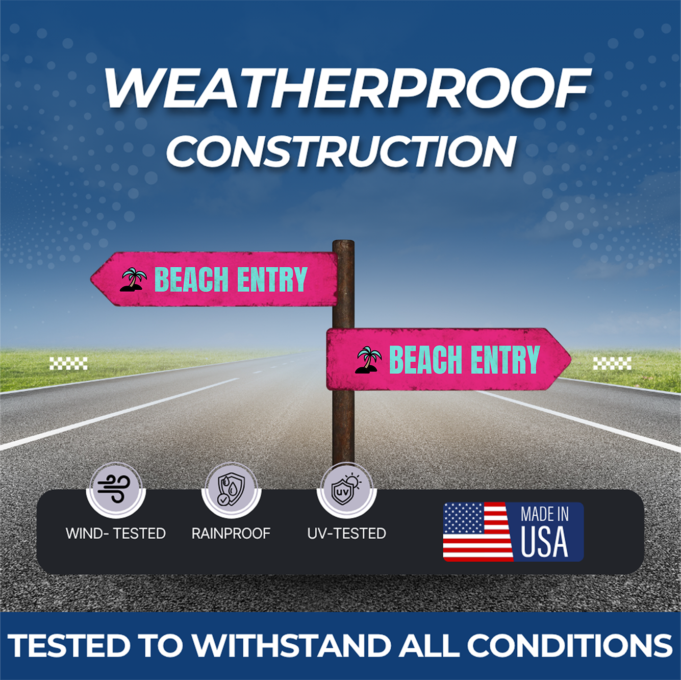 Clearly mark access points with our Beach Entry Sign, perfect for resorts, beachfront homes, parks, campgrounds, hotels, and coastal walkways. Designed for quick visibility, this sign helps visitors easily locate the designated entry to the beach.