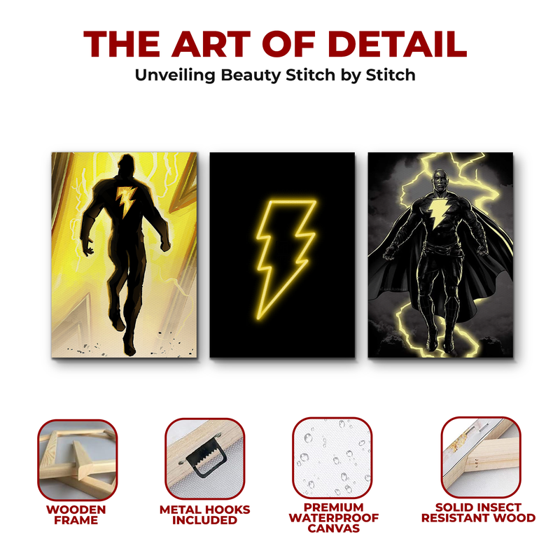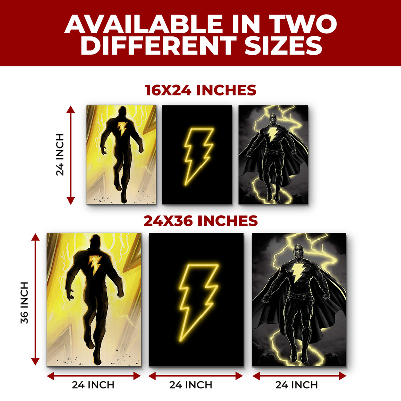 Proudly Made in the USA, this 3-piece wall canvas is lightweight, easy to hang, and designed to keep its electrifying visuals vivid for years. A must-have for any DC fan or collector who admires the unstoppable Power of Black Adam.
