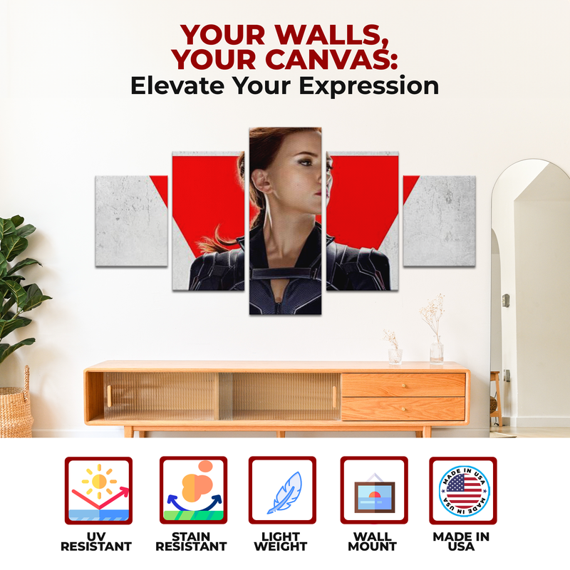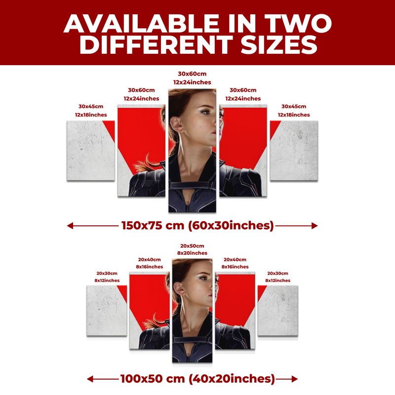 Embrace strength, intelligence, and elegance with this powerful Black Widow 5-piece wall canvas. Featuring Natasha Romanoff in her iconic pose, this artwork captures the fearless energy and mystery of one of Marvel’s most skilled Avengers — perfect for fans who admire courage and sophistication. Ideal for bedrooms, offices, or modern living spaces.