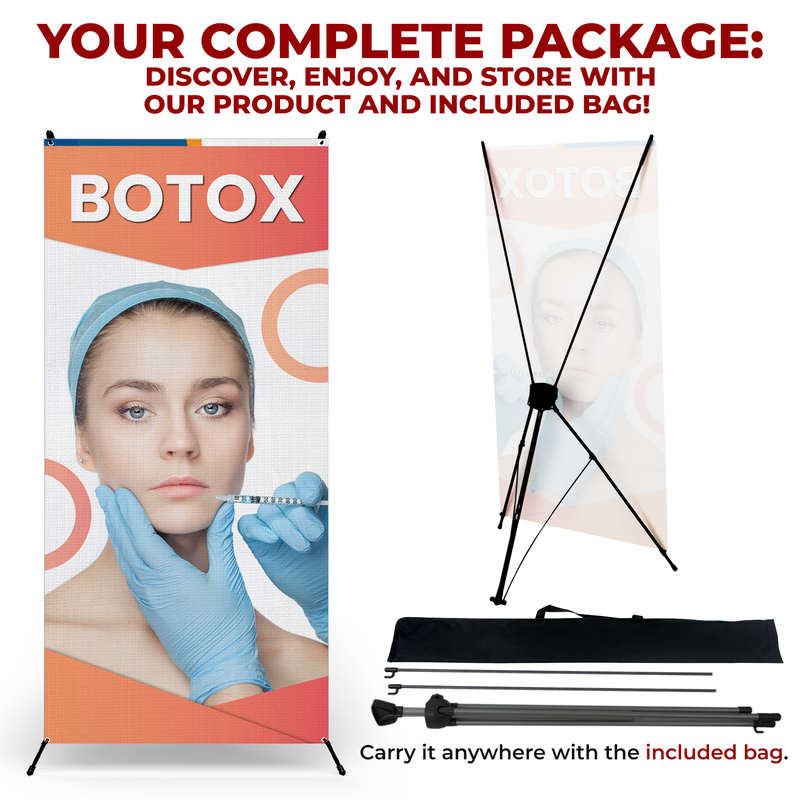 Promote your cosmetic services with the BOTOX X-Banner, designed for clear visibility and professional appeal. Made from 100% high-quality aluminum alloy, this banner stand is lightweight, durable, and easy to assemble or store, making it perfect for medical spas, dermatology clinics, and aesthetic centers.