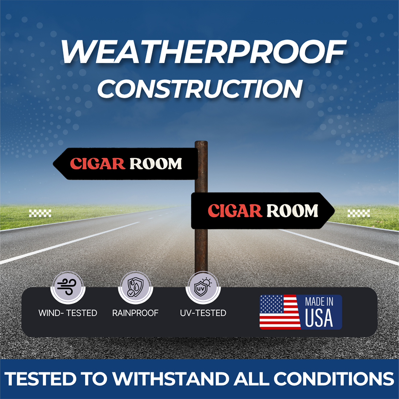 Crafted from premium rust-proof metal, this sign is durable, weather-resistant, and suitable for indoor and outdoor placement. A perfect addition to elevate your cigar space with both function and style.