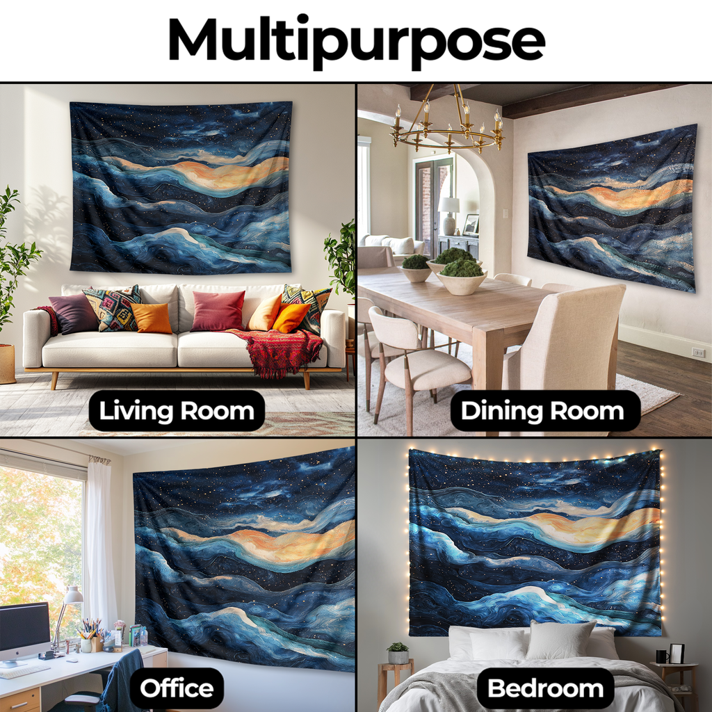✨ Let your space flow with the energy of the stars and the rhythm of the universe through this stunning cosmic tapestry.