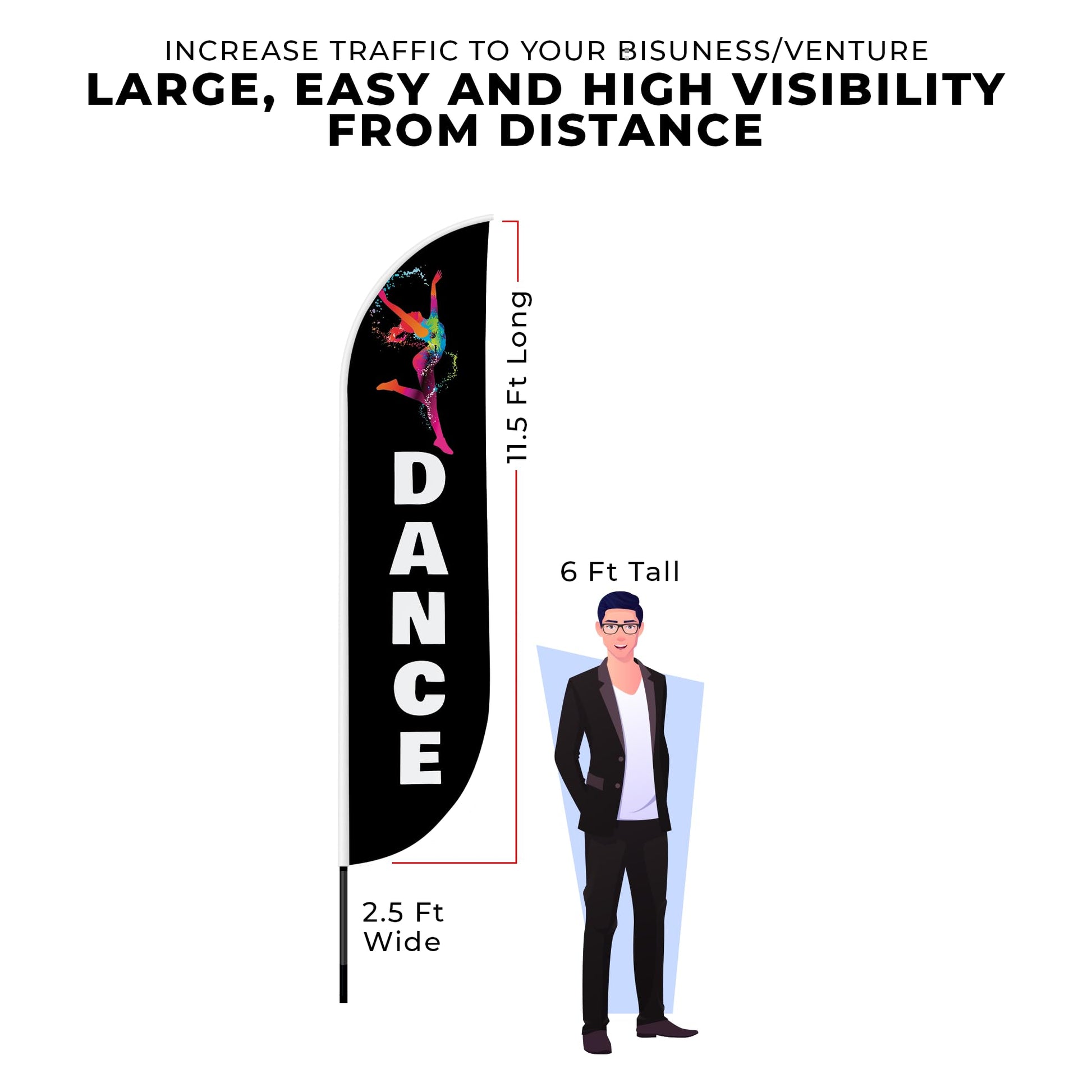 Promote your studio, classes, or events with the vibrant DANCE Feather Flag. Perfect for dance schools, fitness centers, or special events, this flag captures attention and invites people to join in the fun.