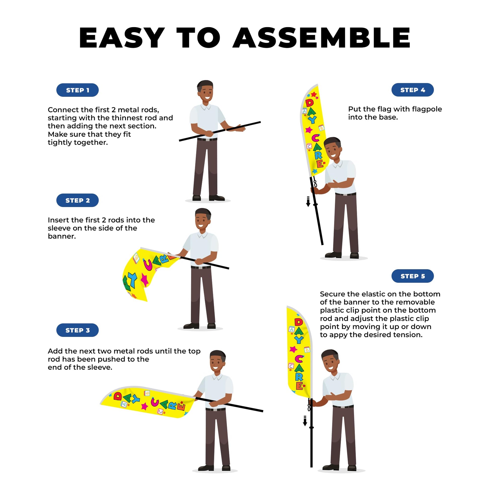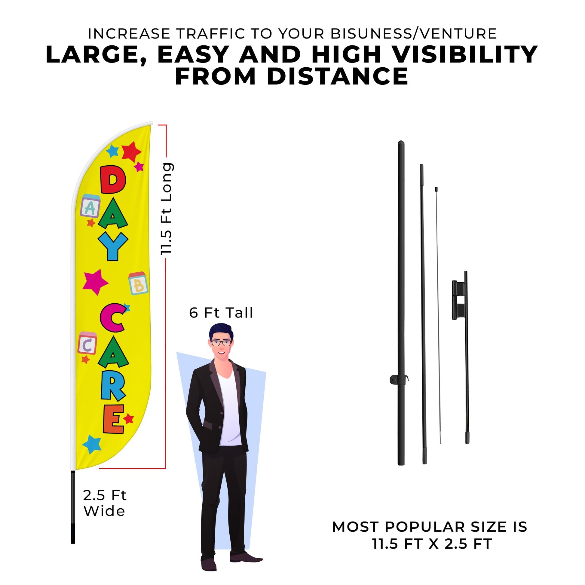 Enhance visibility for your childcare services with the DAY CARE 2 Feather Flag. Perfect for daycare centers, preschools, and early learning facilities, this flag makes your location easy for parents to spot.