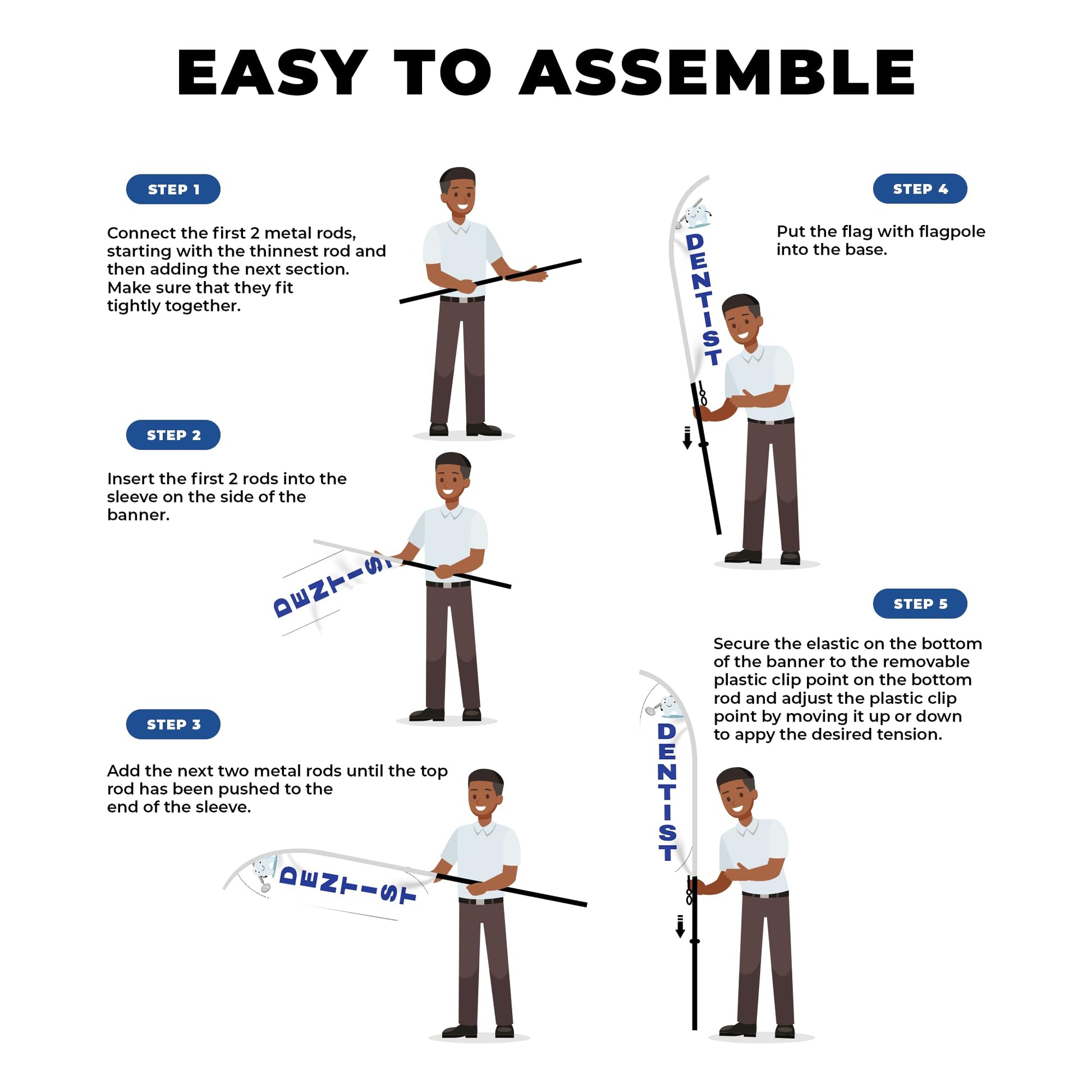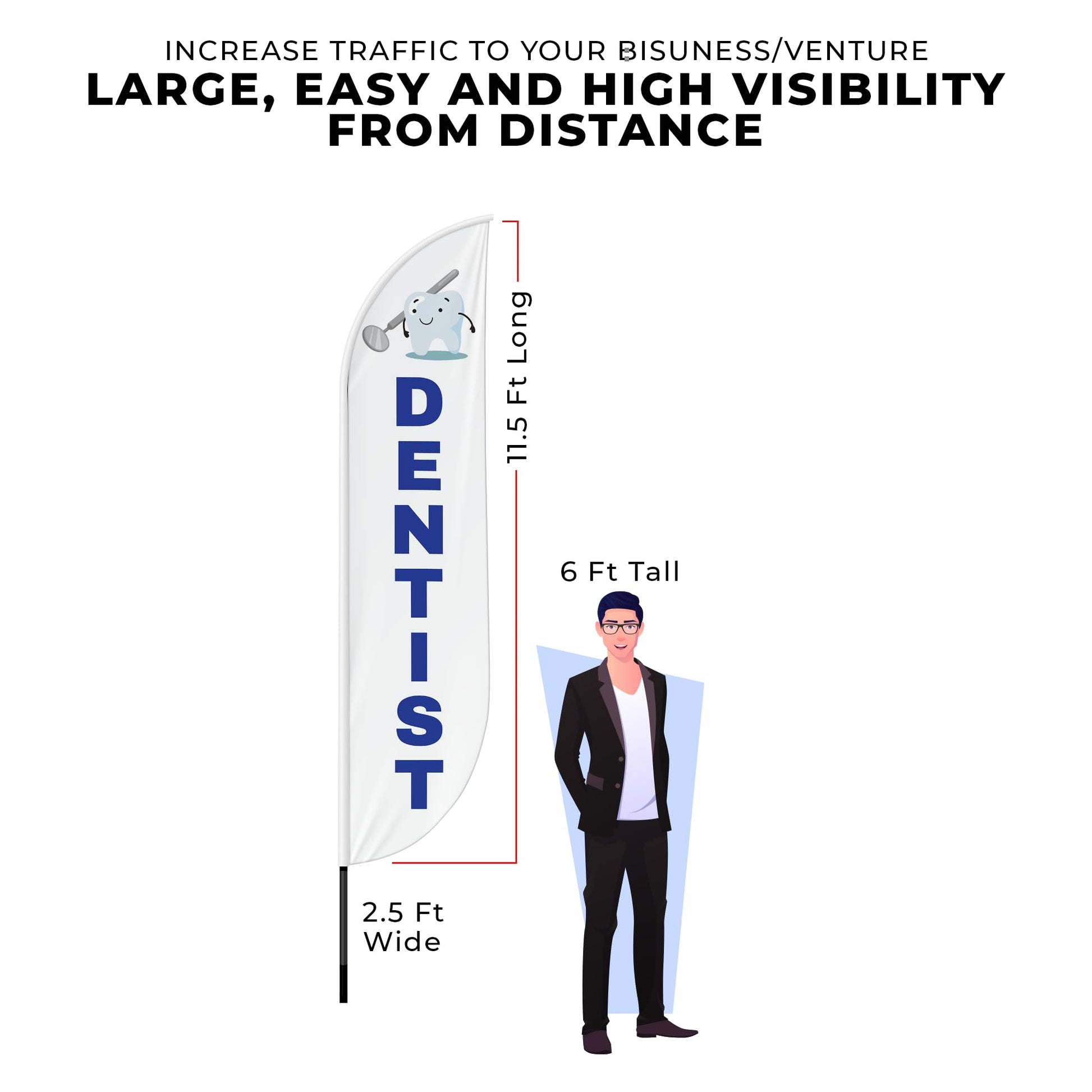 Make your dental practice easy to find with the bold DENTIST Feather Flag. Perfect for dental offices, clinics, or mobile dental services, this flag draws attention and helps patients locate your practice quickly.