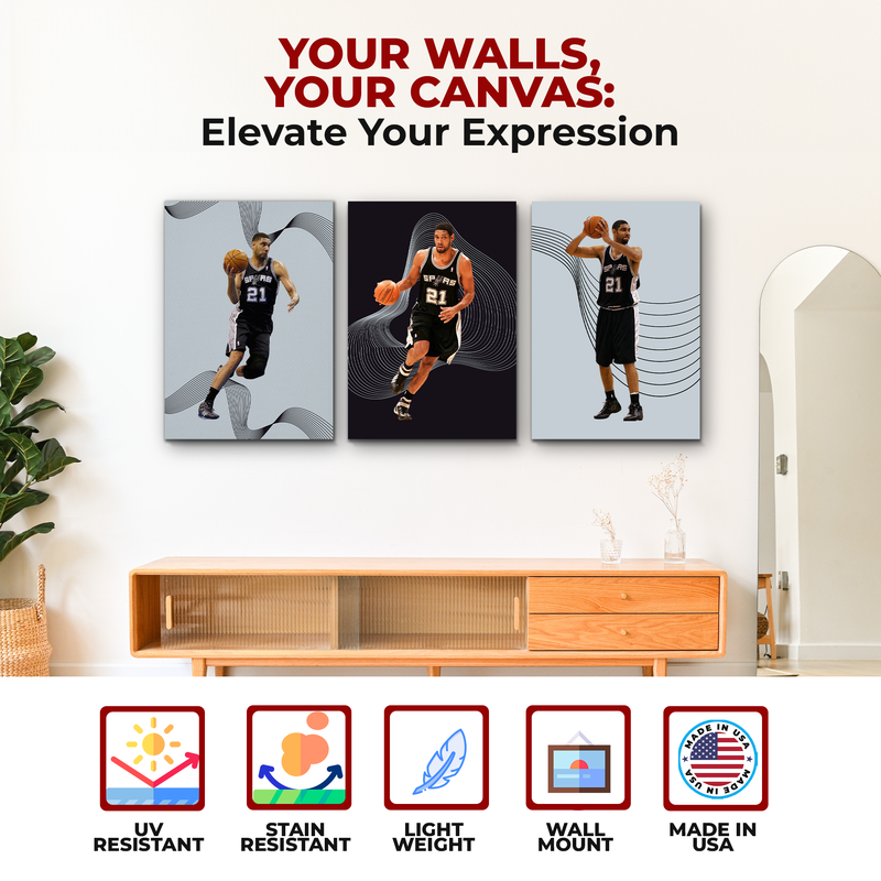 Celebrate the career of Tim Duncan and the San Antonio Spurs with this 3-piece wall canvas set, honoring one of basketball’s greatest players. Perfect for Spurs fans, sports enthusiasts, and collectors, this artwork brings championship legacy, skill, and iconic style to any space.