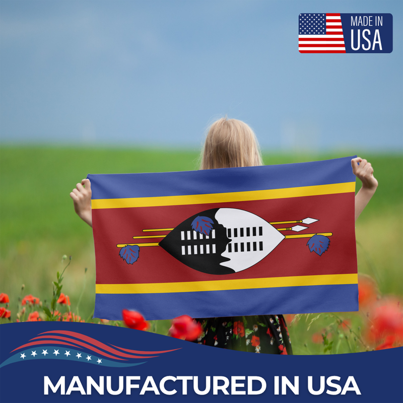 Celebrate the heritage and identity of Eswatini with our Outdoor & Indoor Flag, ideal for homes, offices, schools, cultural centers, and national events. Featuring the bold blue, red, and yellow horizontal stripes, along with the traditional Nguni shield, spears, and staff, this flag represents protection, tradition, and the deep cultural pride of the Swazi nation.