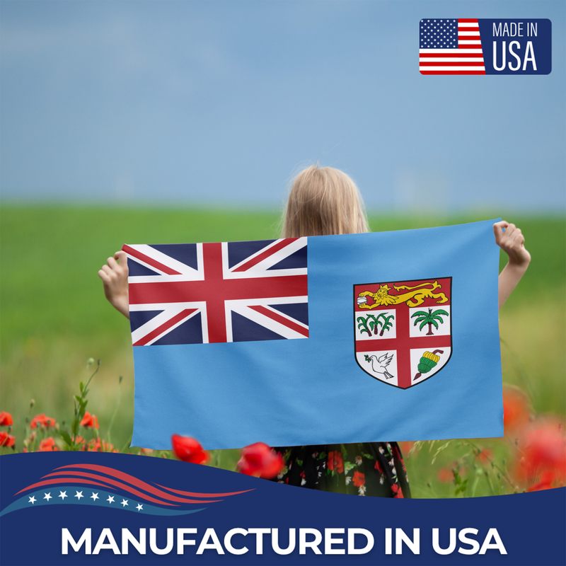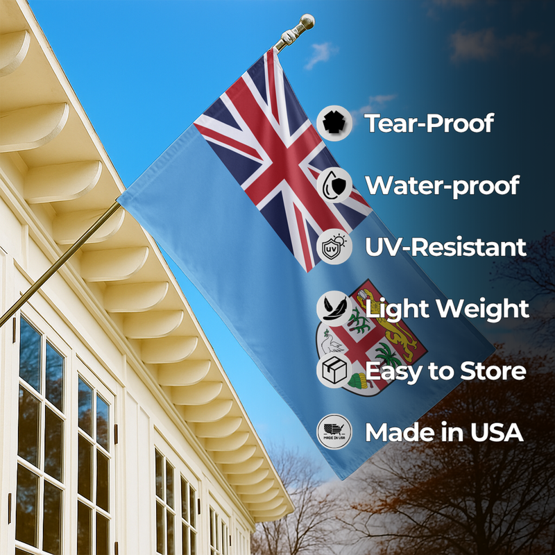 Celebrate the heritage and island pride of Fiji with our Outdoor & Indoor Flag, perfect for homes, businesses, resorts, schools, cultural centers, and national events. Featuring the light blue field with the Union Jack in the canton and the Fijian shield of arms, this flag represents history, identity, and the rich maritime culture of the Pacific nation.