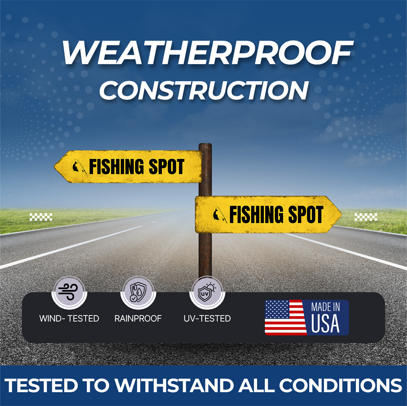Crafted from premium rust-proof metal, this sign is weather-resistant, durable, and perfect for outdoor use. A practical and attractive way to mark your Fishing Spot and help guests find their way with ease.