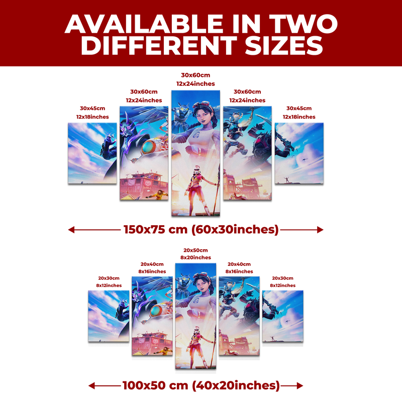 Bring the action and excitement of Fortnite into your room with this dynamic 5-piece wall canvas. Perfect for fans of the game, this artwork captures the vibrant colors, iconic characters, and high-energy style of the world’s favorite battle royale — ideal for gaming setups, bedrooms, or entertainment spaces.