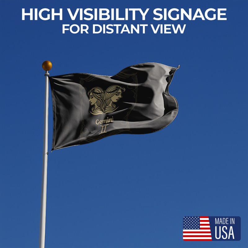 Crafted with reinforced stitching, heavy-duty polyester, and zero color bleed, this flag is made to withstand wind, sun, and rain—versatile and enduring, just like Gemini energy.
