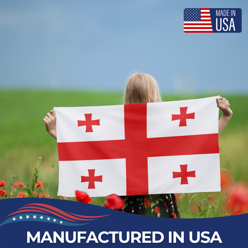 Celebrate the deep heritage and national pride of Georgia with our Outdoor & Indoor Flag, perfect for homes, businesses, schools, cultural centers, and public events. Featuring a clean white field with one large red cross and four smaller red crosses, this iconic design represents faith, unity, and the centuries-old history of the Georgian nation.