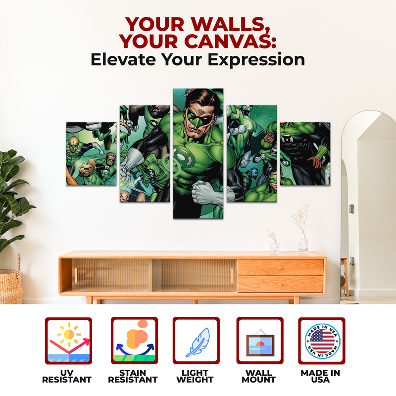 Illuminate your space with the power of will and courage through this Green Lantern Team 5-piece wall canvas. Featuring a stunning high-definition design of Hal Jordan, John Stewart, Kyle Rayner, Guy Gardner, and other members of the Green Lantern Corps, this artwork captures the energy, unity, and cosmic strength that define one of DC’s most iconic teams. A must-have piece for fans of intergalactic heroes and epic comic art.