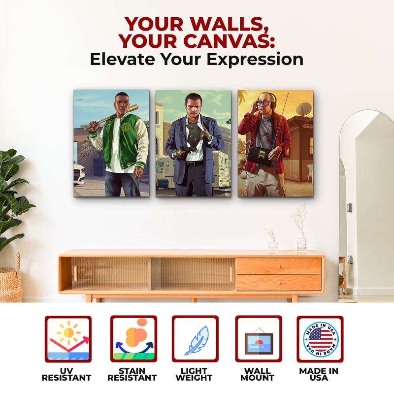 Bring the thrill and action of the streets to your walls with our GTA Canvas Decor, proudly made in the USA. This bold canvas captures the iconic urban chaos, adrenaline, and style of the Grand Theft Auto universe—perfect for gamers, fans, and collectors alike.