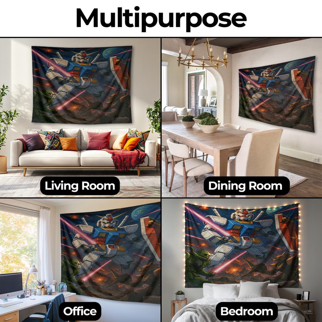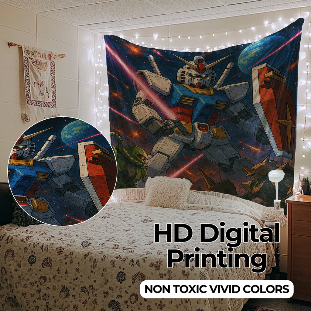GUNDAM’S GALACTIC WARFARE WALL TAPESTRY – Mecha Battle Anime & Sci-Fi Wall Art