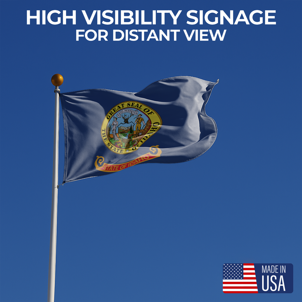 Whether displayed at home, school, or a public venue, the Idaho State Flag delivers strength, movement, and authentic state pride—proudly Made in the USA.