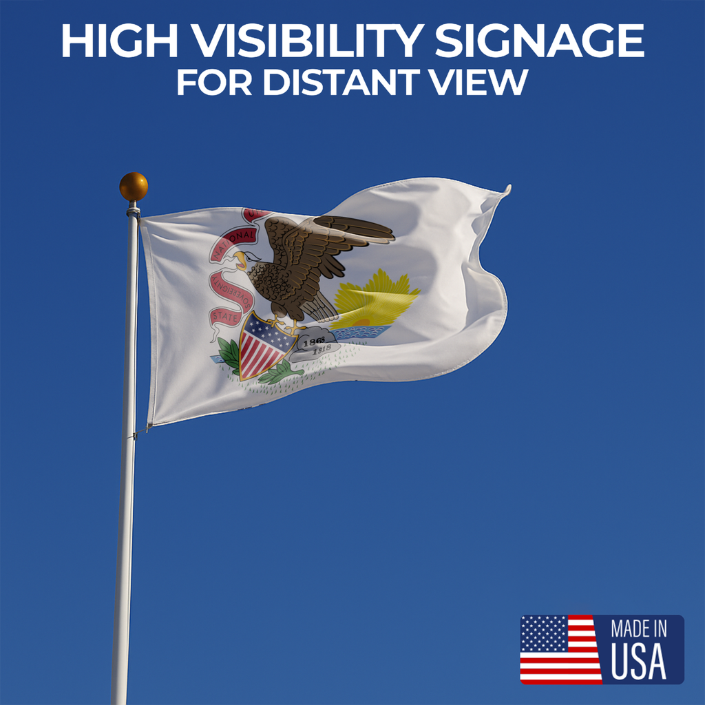 Whether displayed at home, school, or a public venue, the Illinois State Flag delivers strength, movement, and authentic state pride—proudly Made in the USA.
