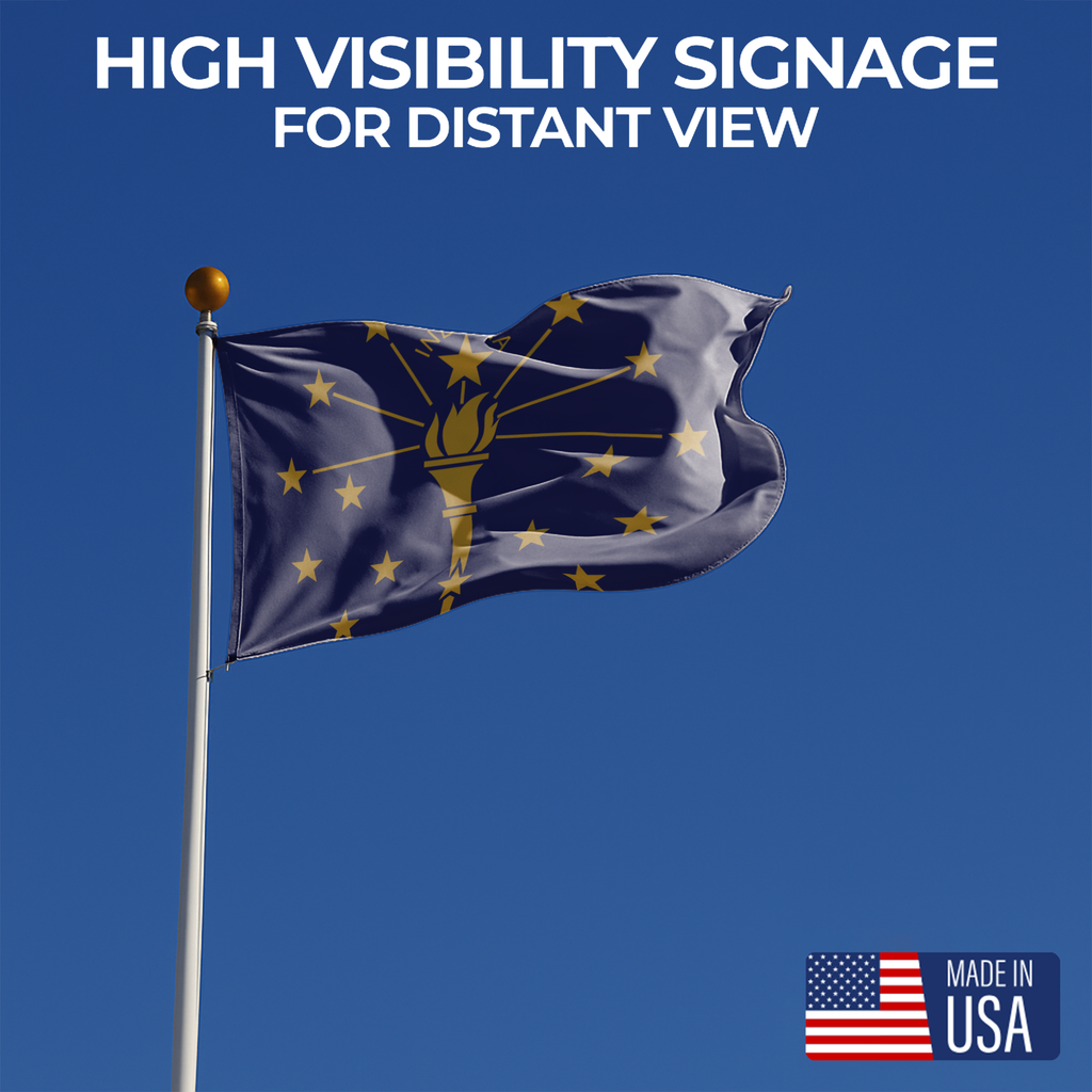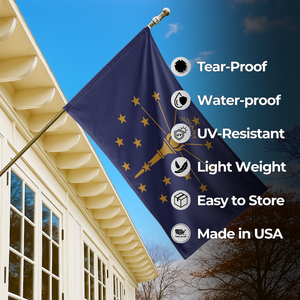 Whether displayed at home, school, or a public venue, the Indiana State Flag delivers strength, movement, and authentic state pride—proudly Made in the USA.