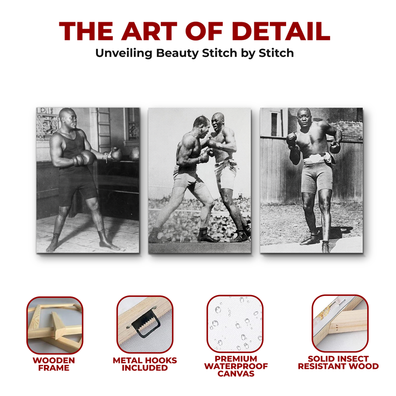Celebrate the legacy of the first African American heavyweight champion with our Jack Johnson Wall Canvas, proudly made in the USA. Known as the “Galveston Giant,” Johnson broke barriers and dominated the ring with unmatched skill and confidence. This canvas brings his powerful story and presence straight to your walls.