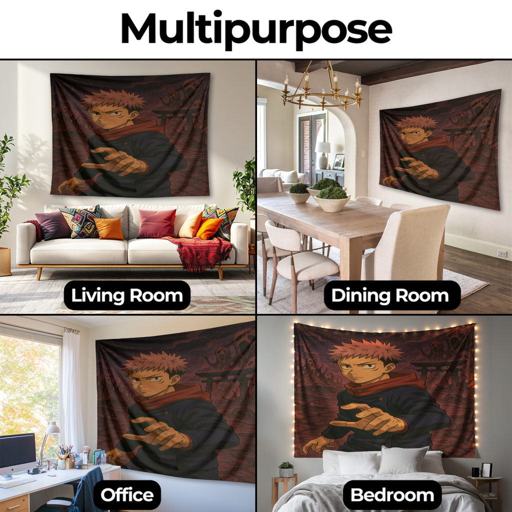 JUJUTSU KAISEN: CURSED REALM WALL TAPESTRY – Dark Anime Energy & Sorcery Wall Art