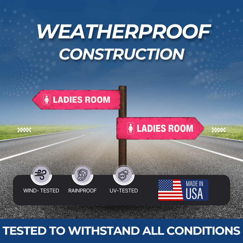 Crafted from premium rust-proof metal, this sign is weather-resistant, durable, and suitable for both indoor and outdoor use. The perfect solution for helping guests and visitors quickly and confidently find the designated ladies’ restroom.