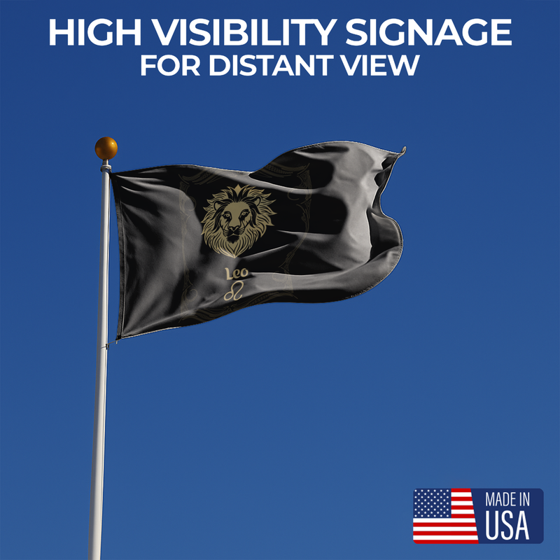 Whether displayed at home or at an event, the Leo The Lion Zodiac Flag delivers durability, elegance, and unmistakable zodiac pride—proudly Made in the USA.