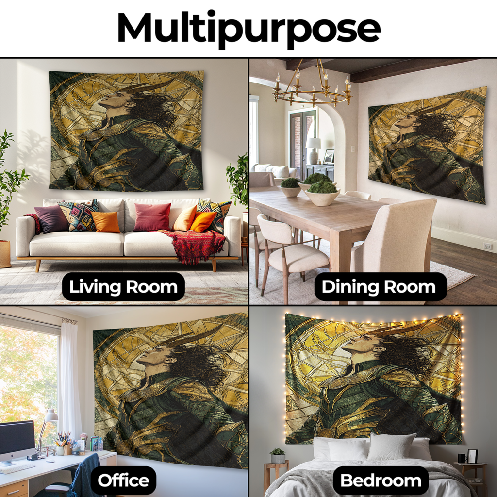 🐍✨ Embrace mystery, mischief, and destiny with the Loki’s Glorious Purpose Wall Tapestry. Inspired by the God of Mischief and his iconic journey through chaos and the multiverse, this tapestry brings a bold blend of magic, rebellion, and Marvel-style grandeur into your space.