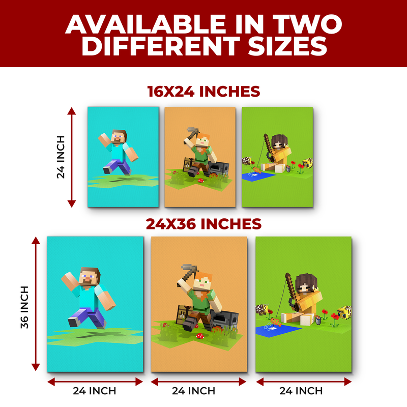 Bring the blocky adventure of Minecraft to your walls with our Minecraft Canvas Decor, proudly made in the USA. This colorful canvas captures the creativity, exploration, and iconic pixelated world that fans love—perfect for gamers, builders, and collectors alike.