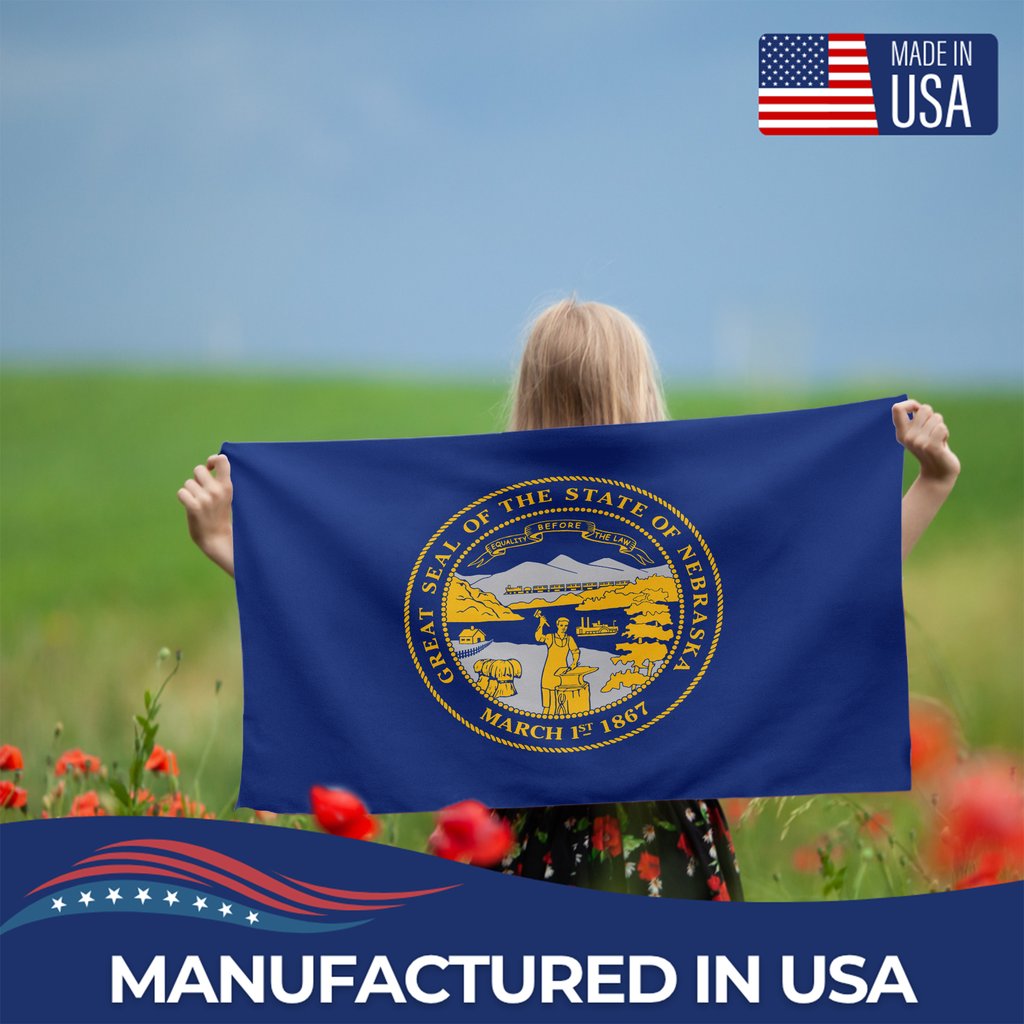 Whether displayed at home, school, or a public venue, the Nebraska State Flag delivers strength, movement, and authentic state pride—proudly Made in the USA.