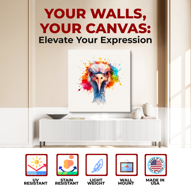 Bring creativity, personality, and contemporary style to your decor with this unique ostrich splash art design — perfect for modern homes and art lovers.