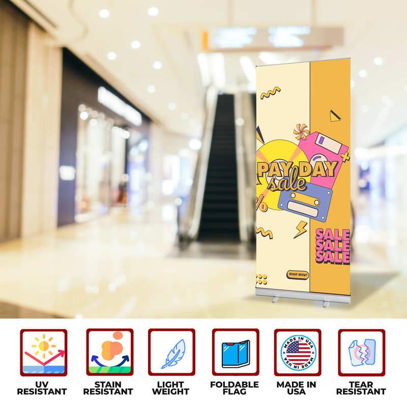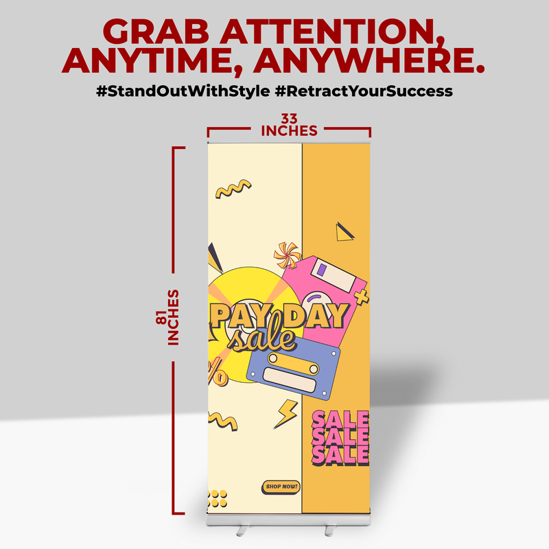 Ideal for retail stores, events, and promotional campaigns, this retractable banner ensures your Payday Sale grabs attention and drives customers in.