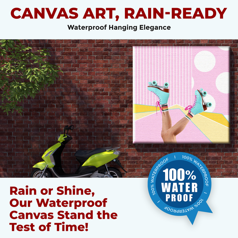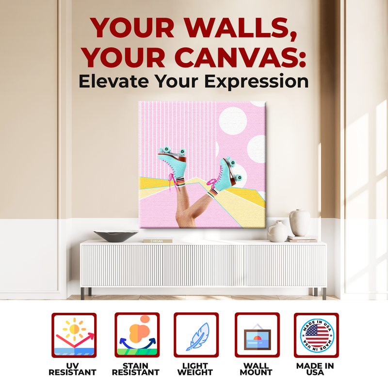 Printed on premium-quality canvas and stretched over a solid wood frame, it’s waterproof, fade-resistant, and proudly made in the USA. Every stylish detail, from the retro skates to the expressive composition, stays crisp and timeless, creating a standout piece that lights up your walls.