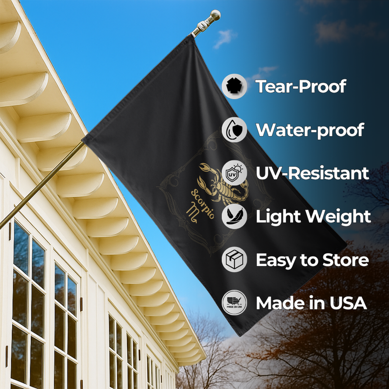 Crafted with reinforced stitching, heavy-duty polyester, and zero color bleed, this flag is made to withstand wind, sun, and rain—resilient, fearless, and enduring, just like Scorpio energy.