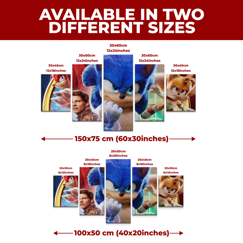 SONIC THE MOVIE WALL CANVAS – 5 PIECE WALL ART