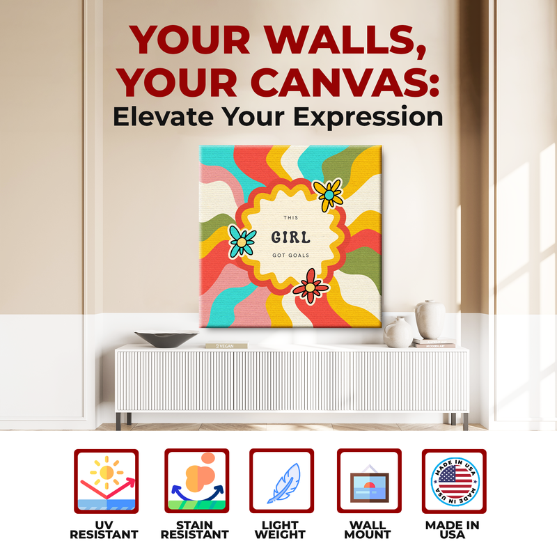Boost your space with confidence and unstoppable energy with the This Girl Got Goals Decor Canvas. Designed with a bold, girly aesthetic and clean modern typography, this canvas brings motivation, positivity, and style together in one powerful statement piece. Perfect for bedrooms, home offices, study areas, or any spot where ambition lives.