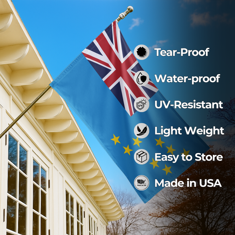 Celebrate the identity and heritage of Tuvalu with our Outdoor & Indoor Flag, perfect for homes, offices, schools, cultural centers, and island-themed events. Featuring a light blue field symbolizing the Pacific Ocean, the Union Jack in the canton, and nine golden stars representing Tuvalu’s islands, this flag stands as a proud symbol of unity, history, and national pride.