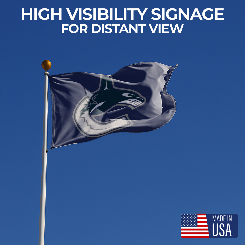 Show your Vancouver Canucks pride with confidence using this high-quality flag, designed for passionate fans who value durability, bold color, and West Coast hockey energy. Perfect for homes, fan caves, bars, tailgates, game rooms, and commercial displays.
