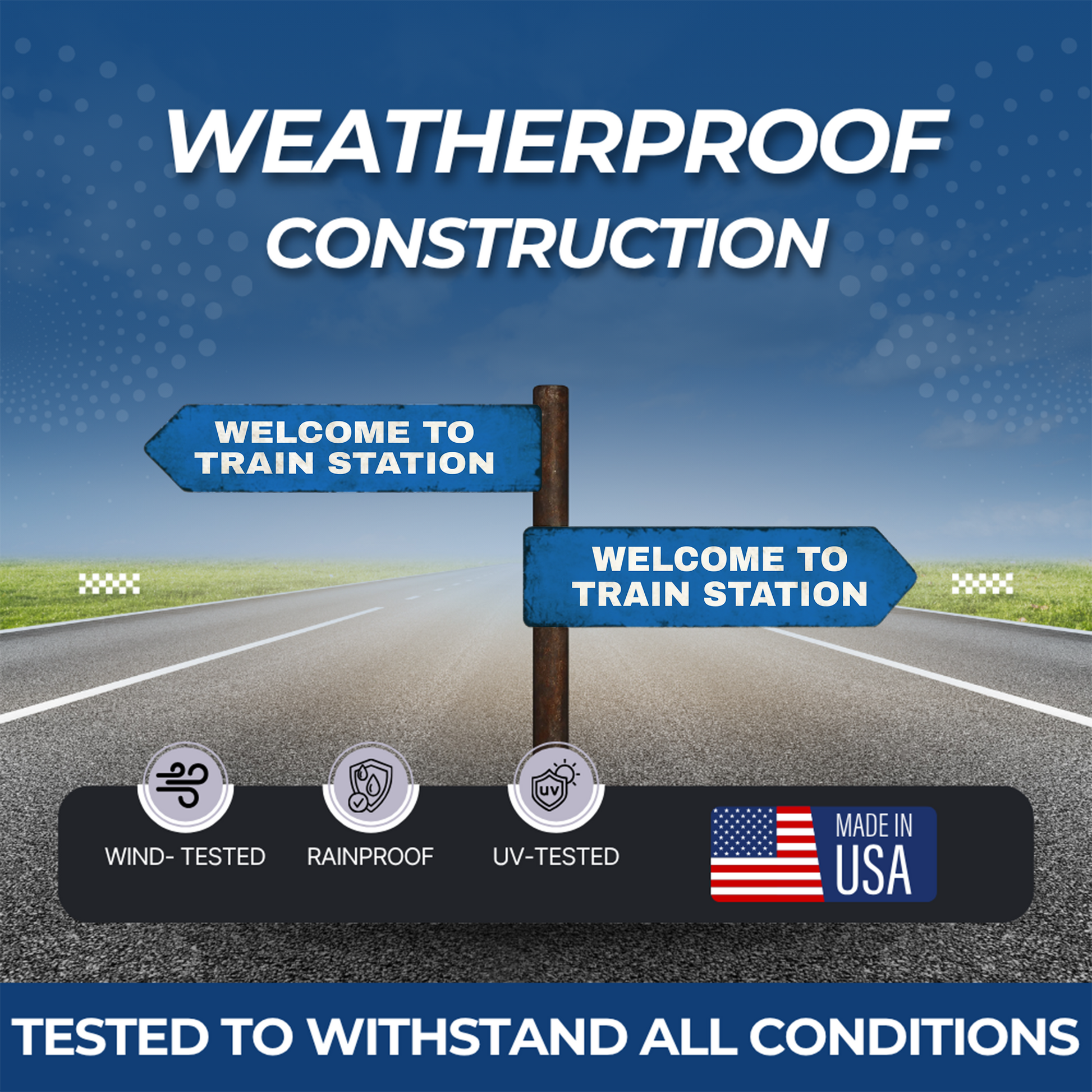 Crafted from premium rust-proof metal, this sign is weather-resistant, durable, and suitable for both indoor and outdoor display. A perfect way to welcome guests and give your Train Station area an authentic, polished look.