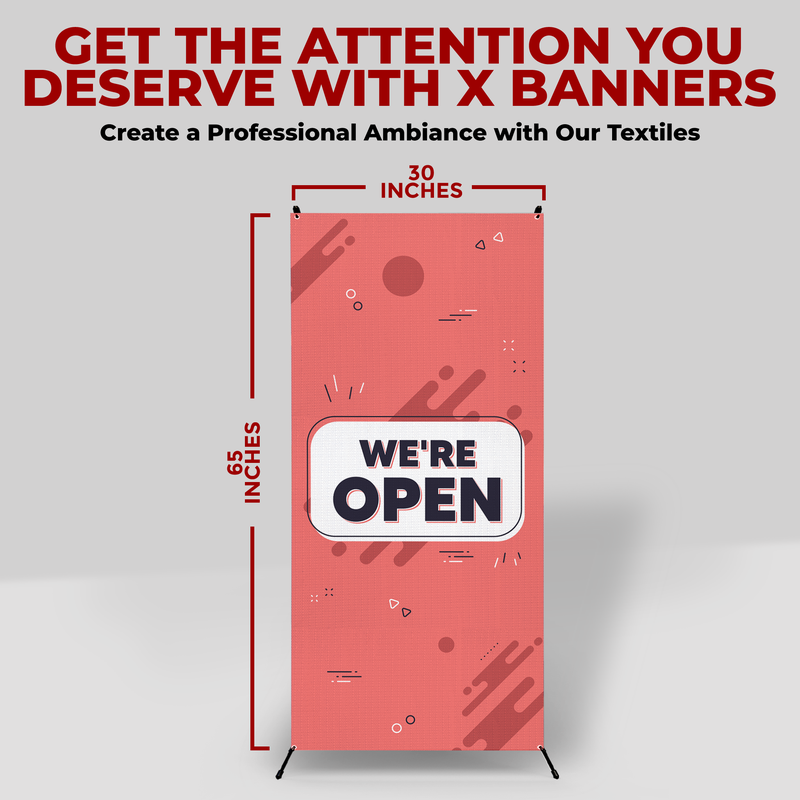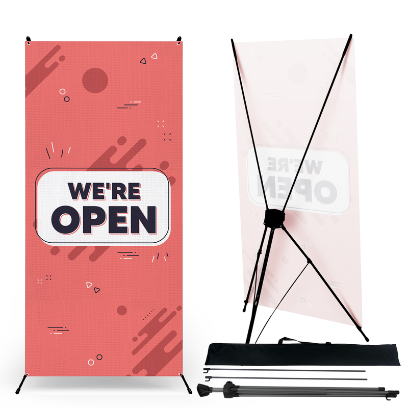 Show professionalism and attract new customers with a high-quality X-Banner that proudly displays We’re Open.