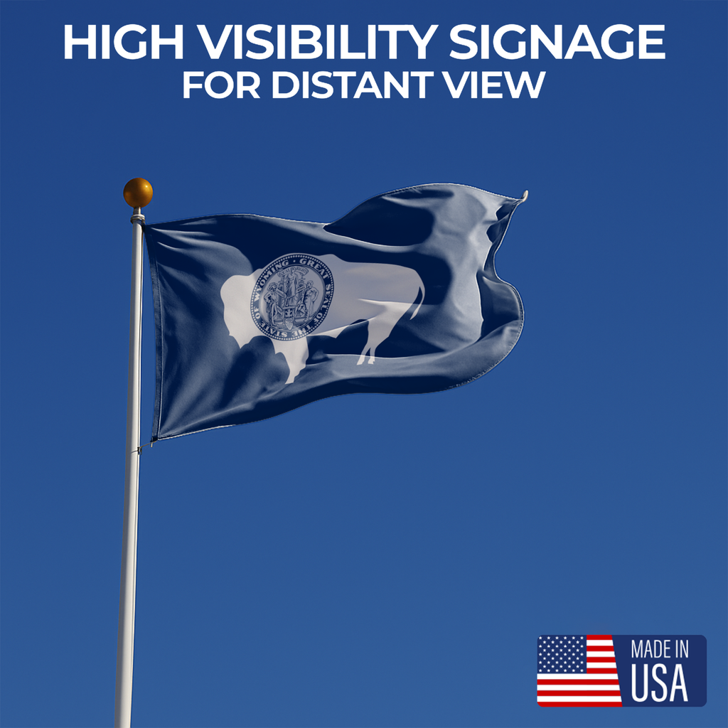 Whether flown at home, school, or a public venue, the Wyoming State Flag delivers strength, movement, and authentic state pride—proudly Made in the USA.
