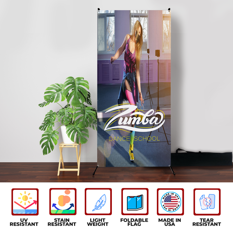 Showcase your Zumba school with a high-quality X-Banner designed to inspire movement, joy, and a love for dance.